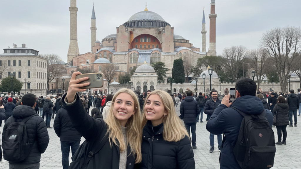 İstanbul’un bu eşsiz güzelliğini kendi kareleriyle ölümsüzleştirenler, şehrin her daim sunduğu sıcak karşılamaya eşlik ediyor. Etraftaki diğer ziyaretçiler de Ayasofya’nın […]